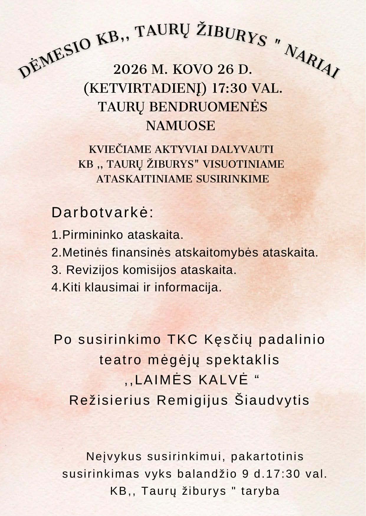 Š.m. balandžio 14 d. 15 val. savivaldybės didžiojoje salėje (Respublikos g. 2, IV aukšte.) įvyks Vietos veiklos grupės ataskaitinis susirinkimas.